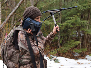 Melissa conducting telemetry using an antenna and receiver to pick up the radio collar’s frequency. This is how biologists track an animal with a transmitter